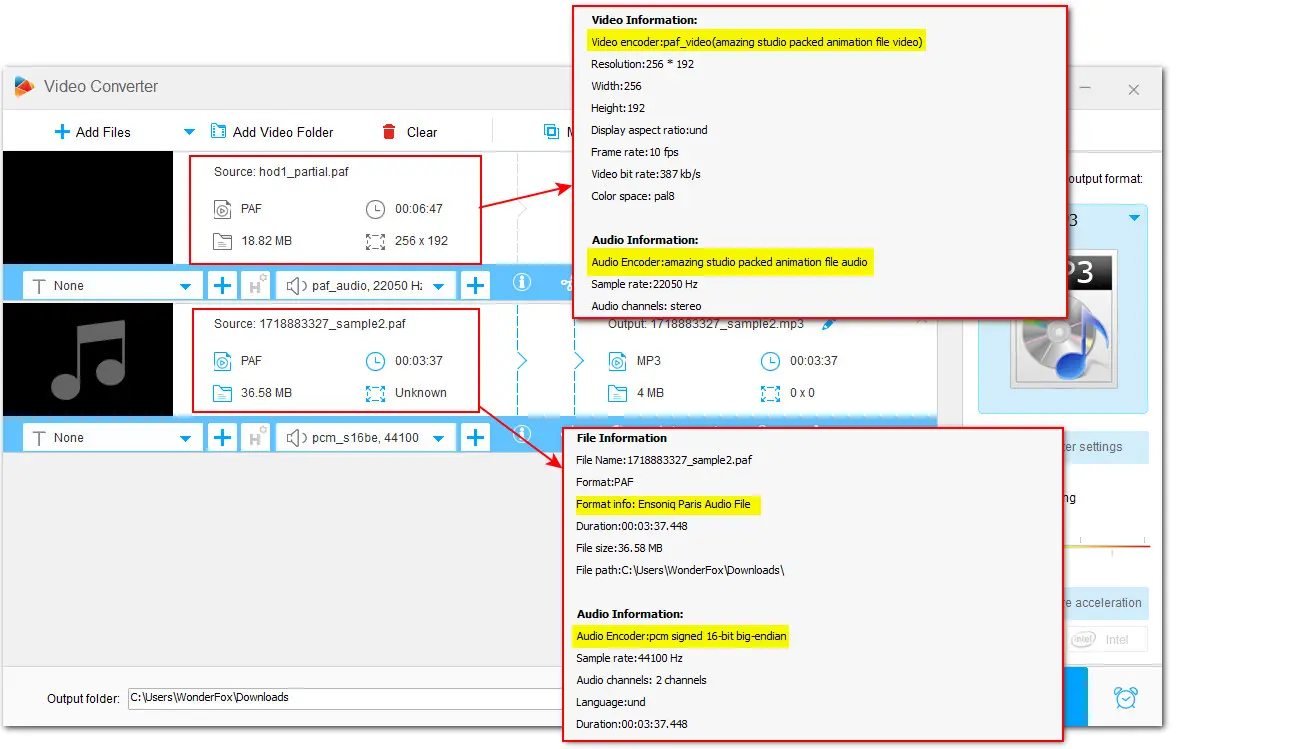 WonderFox HD Video Converter Factory Pro is perfect for this job. This versatile converter can help batch convert your Ensoniq PARIS PAF files to MP3, WAV, FLAC, AAC, AC3, WMA, AU, or other audio formats you need. Additionally, it also enables you to process some .paf video files from Heart of Darkness game.