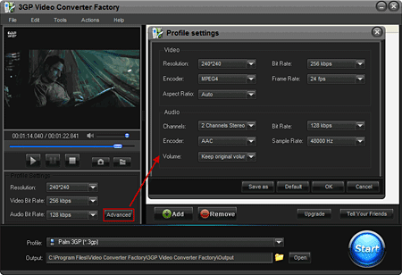 Free 3GP Video Converter Factory is 3GP converting software for mobile phone users. With the free 3GP video converter, you can convert batch of video files to 3gp and 3g2 formats to be played on your mobile phones include Nokia, BlackBerry, Palm, Sony Ericsson, Motorola, Samsung, Philips, LG, NEC etc.