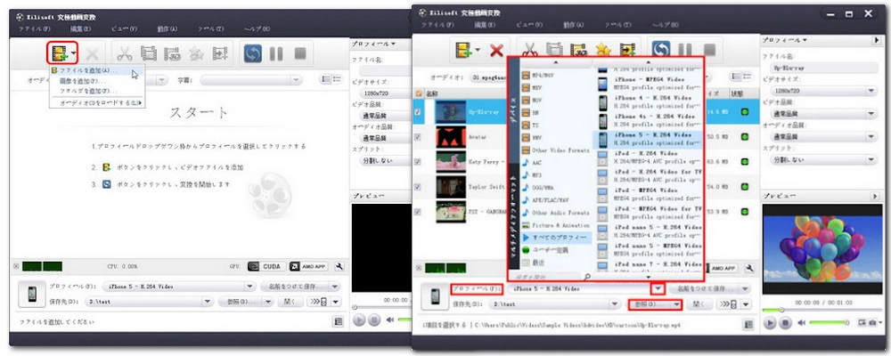 メイン画面で「変換」ボタンをクリックし、「ファイル追加」ボタンをクリックしてコンバートしたいビデオファイルを選択します。