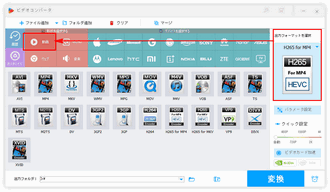 形式が変わらないように、画面右側で大きな形式アイコンをクリックして出力形式リストを開き、「動画」カテゴリから動画形式を1つ選択します。もちろん、解像度を変換しながら動画のファイル形式を変換することも可能です。