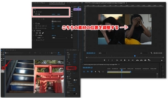 ・もう片方の動画は右半分に縮小・移動