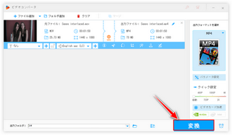 画面一番下にある「▼」アイコンをクリックして新しい動画の出力先を設定します。最後に「変換」ボタンをクリックし、ソフトに読み込んだ全ての動画を60iから60pに一括で変換します。