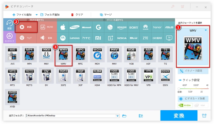 AVIをWMVに変換するには、「動画」カテゴリをクリックして「WMV」を選択してください。
