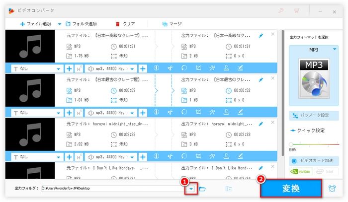 下の三角ボタン「▼」をクリックし、出力フォルダを選択します。