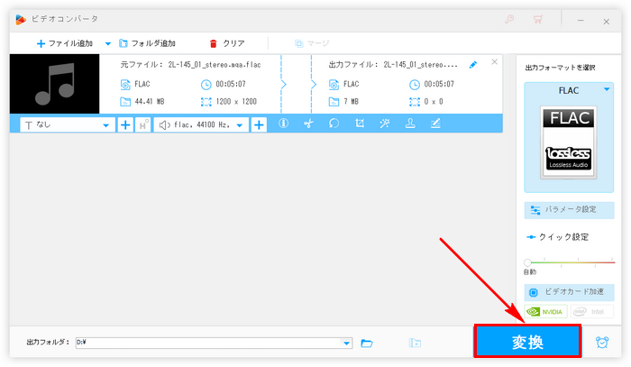 最後に「変換」ボタンをクリックして圧縮後のFLAC音楽を出力します。