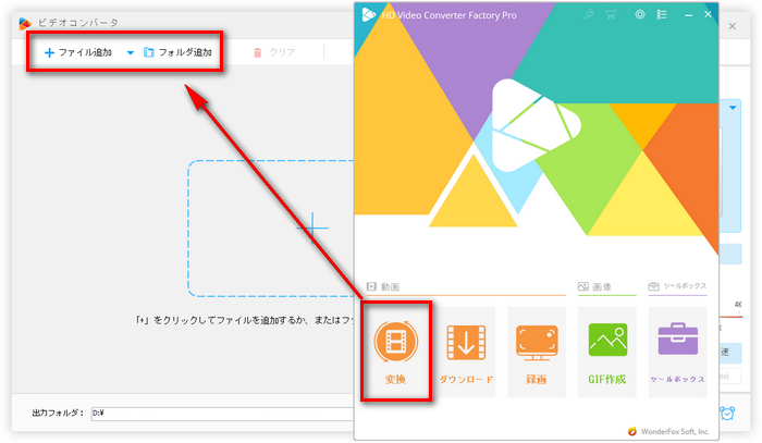 ・WonderFox HD Video Converter Factory Proを起動し、メイン画面の五つのボタンから「変換」をクリックして変換インターフェイスに入ります。