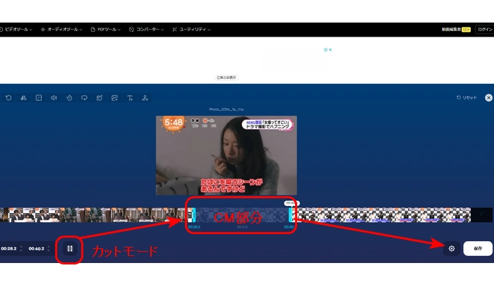 「(▶)」ボタンをクリックして、選択した部分をプレビューして、CMの部分を外しているかどうかを確認します。