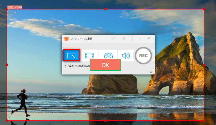 ステップ2、画面上部から録画モードを選択します。ウィンドウモードを選択すると、カーソルをドラッグして録画範囲を指定できます。
