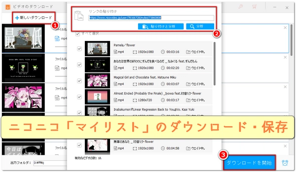 右下の「ダウンロードを開始」をクリックし、ニコニコ「マイリスト」動画のダウンロードを始めます。