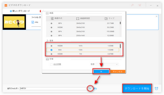 ダウンロード画面の下にある「▼」ボタンをクリックして音楽ファイルの保存先を指定してから、「ダウンロードを開始」をクリックすれば、YouTube音楽をパソコンにダウンロードすることができます。