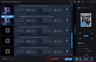 ソフト下部で「…」をクリックして出力動画の保存先を設定してから、「RUN」をクリックすればDVDを指定の形式に変換できます。