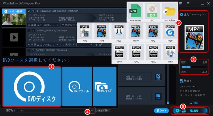 フォーマットアイコンの下にあるスライダーをドラッグすると、ワンクリックで画質/コピースピードを設定できます。