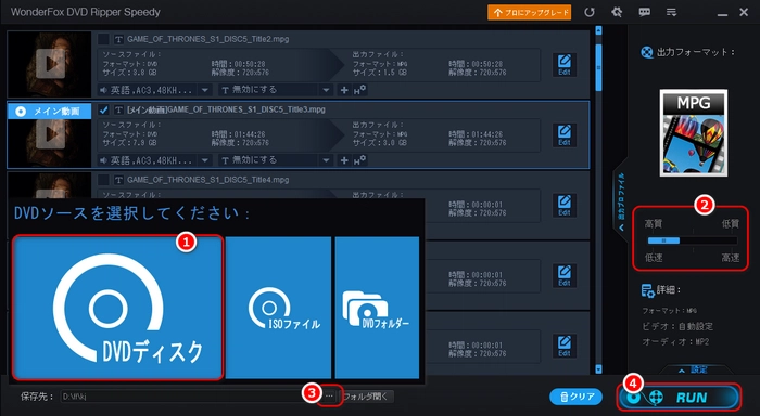 高速な処理速度:名前の通り、高速なDVDリッピングが可能です。時間がかかることなく、短時間でDVDからMPG動画ファイルを抽出できます。これにより、様々なデバイスやプレーヤーに対応できます。