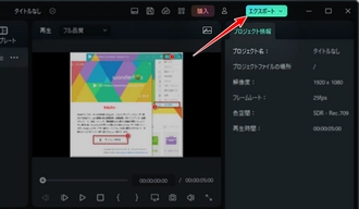 ①Wondershare Filmoraで動画を編集した後、右上の「エクスポート」をクリックしてログインし、動画保存画面に入ります。