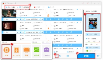 6、次、「変換」をクリックして、Wondershare Filmoraで出力した動画をMP4に変換します。