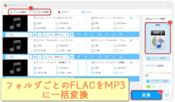 この部分では、専門的な音楽変換ソフトを使用して、フォルダごとのFLACファイルをMP3に一括変換する利点と変換手順をご説明します。