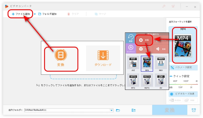 右側の形式アイコンを押して、「動画」カテゴリに移動し、必要な出力形式を選択します。
