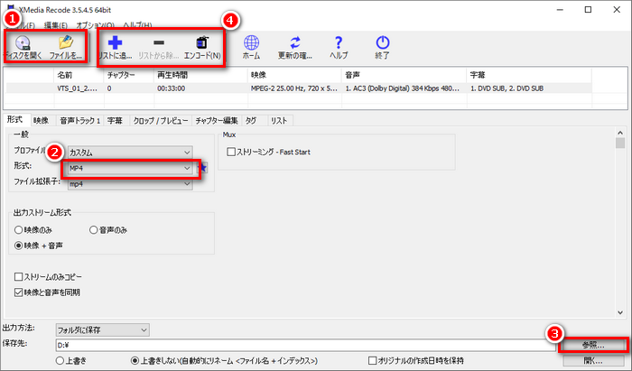 合わせて読みたい:XMedia RecodeでDVDをMP4に変換する方法