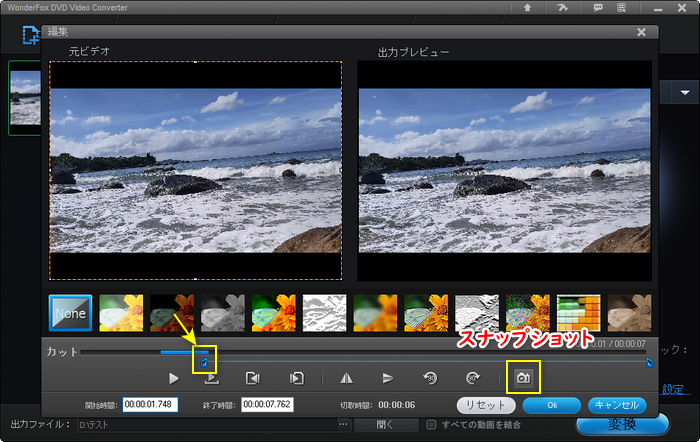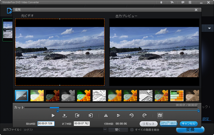 その上に、動画をトリミング・クロップ・回転・反転・エフェクト・字幕追加などで編集することにも対応します。