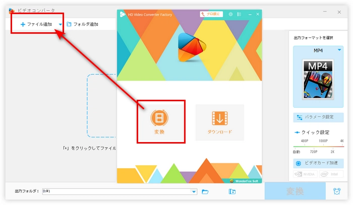 「+ファイル追加」をクリックして、GIFファイルを変換ソフトに読み込みします。