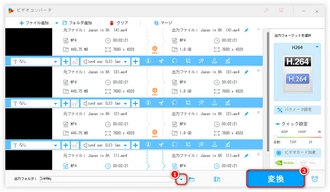 「変換」をクリックし、GoProで撮影した再生できない4K動画ファイルのフォーマット変換・パラメータ変更を開始します。
