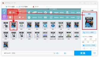 ステップ2.右の形式画像をクリックして、「動画」カテゴリに移動し、「MP4」を選択します。