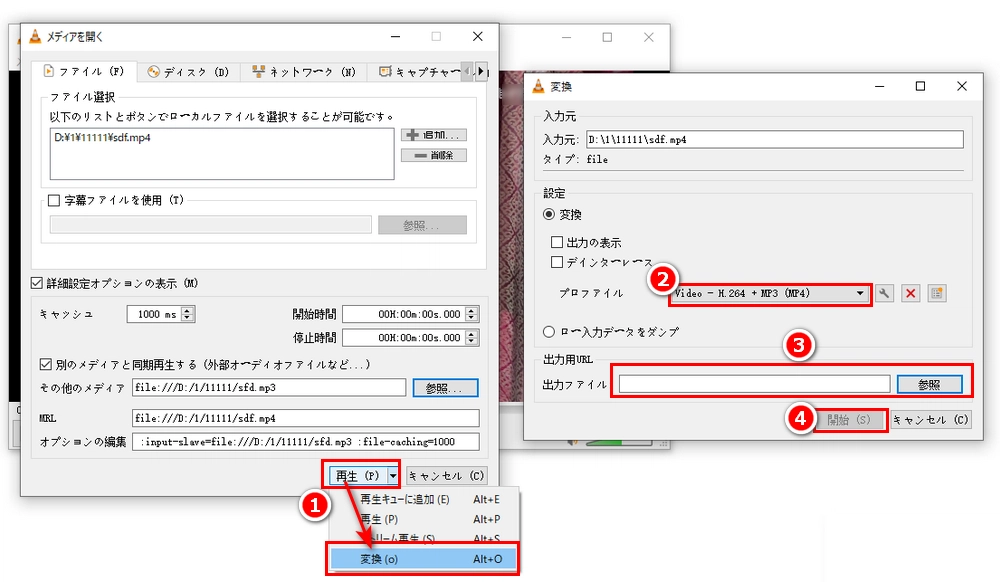 VLCで動画と音声を結合したファイルを保存すれば、次は再編集せずに再生することができます。以下は詳しい手順です。