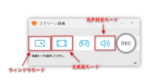 ・PC画面全体で録画するには、二つ目の「全画面モード」を選択します。