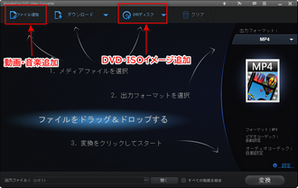 5上部の「エンコード」をクリックすれば動画やDVDなどを変換できます。