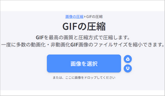 ②画面中央にある白いエリアをクリックしてパソコンにあるGIFファイルを選択してアップロードするか、「URLを入力」をクリックしてGIFアニメのURLを入力します。その後、GIFを軽くする処理が自動的に行われます。