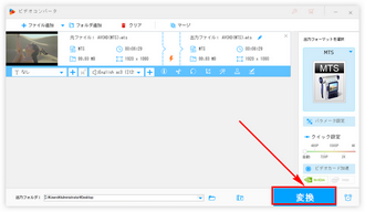 「▼」アイコンをクリックして新しい動画ファイルの保存先を設定します。最後に「変換」をクリックして音が出ないM2TS/MTSファイルのコーデックを変換するプロセスを始めます。