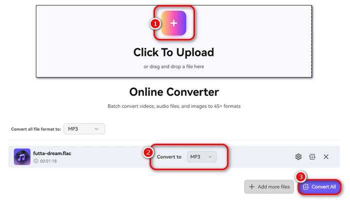 ステップ3.「Convert」を押して、オンラインでFLACをMP3に変換します。