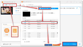 4「▼」アイコンをクリックして出力先を設定してから「ダウンロードを開始」ボタンをクリックし、インターネットからOP風MAD動画を作る素材をダウンロードします。