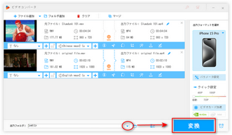 そして、「ファイル追加」または「フォルダ追加」をクリックしてiPhoneで再生したいWMVファイルを読み込みます。