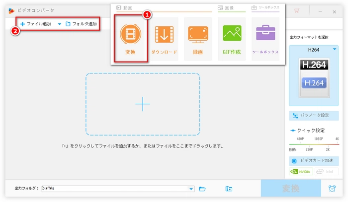 上記の3番目の方法で「ファイルの読み込み機能により...」のエラーを解決した場合、書き出した動画の汎用性が不十分という問題に直面することがあります(MP4/H.264形式で書き出されるとは限らないため)。そこで、他の形式/プリセットで書き出し、「ファイルの読み込み機能により...」のエラーをうまく回避した場合、軽量で強力な動画形式変換ソフトのWonderFox HD Video Converter Factory Proを使って、書き出した動画をMP4/H.264などの汎用性の高い形式に変換してみてはいかがでしょうか。使い方は非常に簡単で、動画編集/変換の経験が浅い方から経験豊富なベテランまで、安心して使用することができます。強力で高度な動画デコード技術により、Premiere Proから書き出した各種形式の動画ファイルを含め、ほぼすべての動画ファイルを読み込むことができます。GPUアクセラレーションと独自の動画エンコード技術により、書き出す動画の速度と品質を飛躍的に向上させます。対応する出力形式はMP4/MOV/AVI/MKV/WMV/M4V/VOB/MPGなどで、H.264/H.265(HEVC)/XVID/DIVX/VP9などの一般的なエンコーダでの動画エンコードにも対応します。また、ダウンロード/録画/GIF作成/フォーマット一括変換/動画パラメータ一括変更機能も非常に便利です。