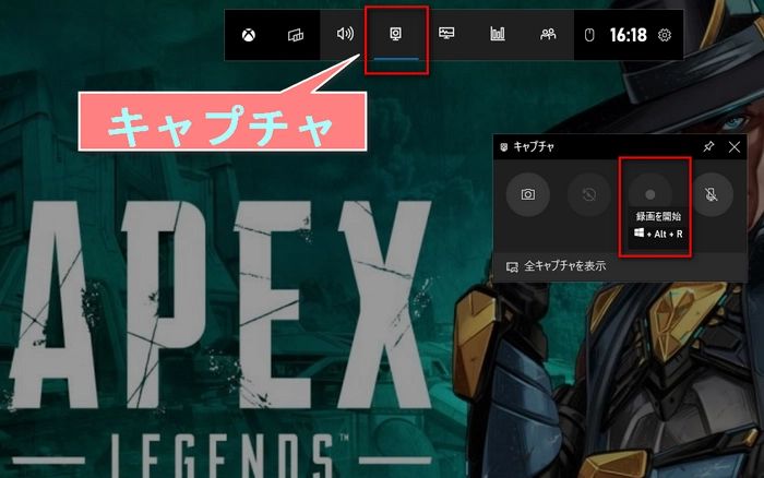 Windows10のPCのゲームバーを使ってApexを画面録画する手順