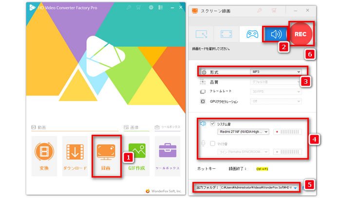 「WonderFox HD Video Converter Factory Pro」は強力な録音ソフトとして、パソコンのシステムやマイク音声を録音することができます。