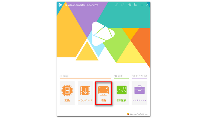 WonderFox HD Video Converter Factory Proを実行し、メイン画面で「録画」機能を開きます。