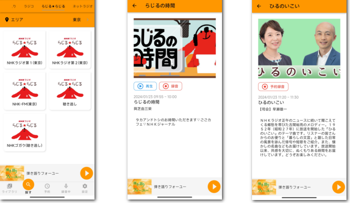 下記にて「らくらじ2」を利用してAndroid/iPhoneスマホでNHKのFMラジオを録音する手順をご説明します。