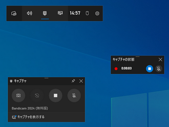 録画したい動画のウィンドウを適切なサイズに調整してからキーボードから「Win+G」を押してゲームバーを呼び出す >> 「キャプチャ」と「録画を開始」アイコンを順次クリックし、インターネット配信の動画を録画 >> 「録画を停止」ボタンをクリックして録画を終了 >> 「キャプチャを表示する」をクリックすれば録画した動画を確認できる。