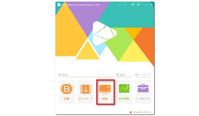 WAV録音ソフトWonderFox HD Video Converter Factory Proを起動して、「録画」をクリックします。
