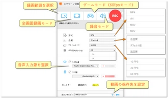 メイン画面で「録画」をクリックし、録画画面に入ります。