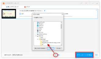 「▼」をクリックして動画の保存先を設定してから、「ダウンロードを開始」をクリックすれば動画をダウンロードしてPCに保存することができます。