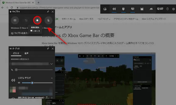 1、「Windows」+「G」キーを同時に押して、「Xbox Game Bar」を起動します。
