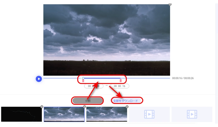 4.「全部をダウンロード」をクリックして、分割した動画をダウンロードします。