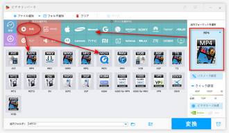 動画の形式がインスタグラムの推奨形式と違う場合、画面右側の「出力フォーマットを選択」下のアイコンをクリックして、「動画」タブでインスタに投稿可能の形式「MP4」または「MOV」を選択して動画の形式を変換します。