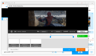 最後に「変換」ボタンをクリックして動画クリップを書き出します。これでUSBメモリに保存できない大容量動画を複数の4GB以下の動画クリップに分割できました。
