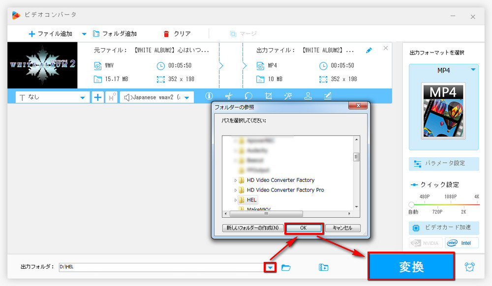 ・最後に「参照」をクリックし、出力フォルダーを選択(複数のファイルが追加された場合、変換したファイルは元のファイルが保存された場所と同じ所に保存されます)