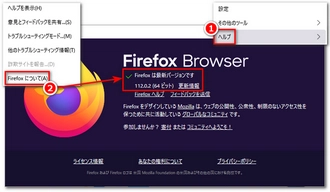 このような場合は、Firefoxブラウザを最新バージョンにアップデートすることで、パフォーマンスとセキュリティが向上するのでお試しください。Firefoxのアップデートは、「≡(メニュー)」バーの「ヘルプ」オプションをクリックし、「Firefoxについて」を選択するだけで、新しいバージョンがあるかどうか自動的にチェックされます。
