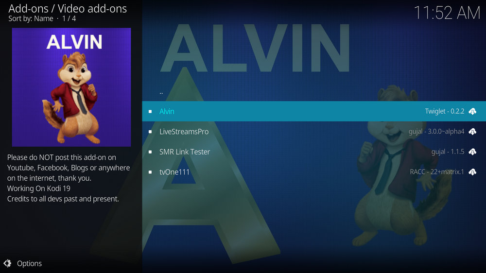 Alvin is a lesser known fork of the well-known Kodi Exodus addon from Octopus repository.